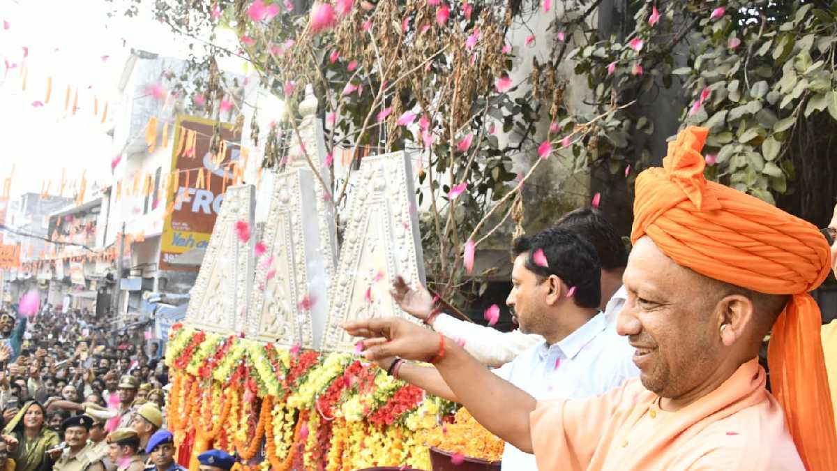 मुख्यमंत्री योगी आदित्यनाथ ने अपने संबोधन के उपरांत होलिका दहन शोभायात्रा के लिए सजाए गए रथ पर अवस्थित भक्त प्रहलाद की आरती उतारी। उनके चित्र पर फूल बरसाने के बाद बड़े ही उमंग से उपस्थित जनसमूह पर पुष्प वर्षा करते हुए फूलों से होली खेली। शोभायात्रा को लेकर लोगों का उत्साह देखते ही बन रहा था। इस अवसर पर महापौर डॉ. मंगलेश श्रीवास्तव, विधायक विपिन सिंह, कालीबाड़ी के महंत रविंद्रदास, काशी से आए महामंडलेश्वर संतोष दास उर्फ सतुआ बाबा, पूर्व पार्षद रामभुआल कुशवाहा, होलिका दहन उत्सव समिति के अध्यक्ष विपिन पटवा समेत समस्त पदाधिकारी और बड़ी संख्या में श्रद्धालु उपस्थित रहे। होलिका दहन शोभायात्रा में रथ पर सजाई गई झांकियां सबके आकर्षण का केंद्र बनी हुईं थीं। इसमें श्रीरामलला और राम मंदिर की झांकी के साथ ही श्रीगणेश जी, शंकर पार्वती, राम सीता, ब्रह्मा सरस्वती, हनुमान जी, काली जी, बरसाने और मसाने की होली की झांकियां सम्मिलित थीं।
