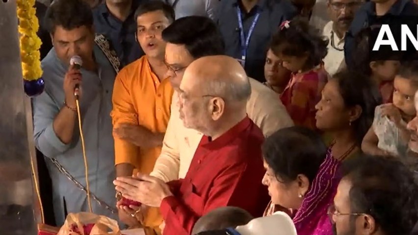 अमित शाह मैहरून रंग के कुर्ता पहने थे। उनके बेटे जय शाह भी मौजूद थे। वे गोल्डन कलर के कुर्ता पहने थे। उन्होंने अपने परिवार के साथ माता रानी के दर्शन किए और आशीर्वाद लिया।