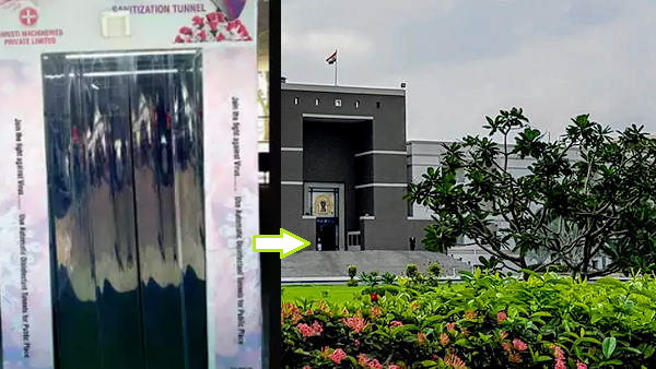 गुजरात हाईकोर्ट के दरवाजे पर सैनेटाइजेशन सुरंग स्थापित हुई, इससे लोगों पर नहीं आएगा कोरोना