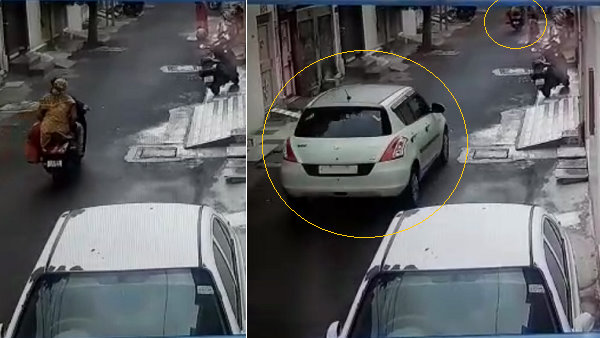 राजकोट। यहां कोठारिया रोड स्थित साधना सोसायटी में रहने वाली एक महिला को उसके पति ने मार डालने का प्रयास किया। वह एक्टिवा पर कहीं जा रही थी, तभी पीछे से उसका पति कार में आया और ठोकर मार दी। उसके बाद वहां से कार को भगा ले गया। शोर सुनकर स्थानीय लोग घरों से बाहर निकल आए। वहां से कुछ दूर लगे एक सीसीटीवी कैमरे में यह घटना कैद हुई।