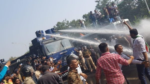 कांग्रेस कार्यकर्ताओं ने पुलिस के वाहन पर पथराव किया। वाहनो के शीशे तोडे और पुलिस पर हमला भी किया। कार्यकर्ताओं ने पुलिस द्वारा लगाए गए बैरिकेड को भी तोड़ दिया। पुलिस ने बचाव में कार्यकर्ताओं पर लाठीचार्ज कर दिया। फिर वाटर कैनन से पानी का फव्वारा चलाया। पुलिस ने कांग्रेस नेताओं को हिरासत में ले लिया। कांग्रेस के प्रदेश अध्यक्ष अमित चावड़ा को भी विरोध प्रदर्शन छोडकर भागना पड़ा। उनके कपड़े भी फाड़ दिए गए। वह फटे कपड़े पहनकर विधानसभा में आए।