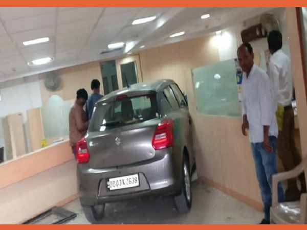 बैंक ऑफ महाराष्ट्र का शटर तोड़ घुसी बेकाबू कार, ड्राइवर से ब्रेक की बजाय दब गया एक्सीलेटर