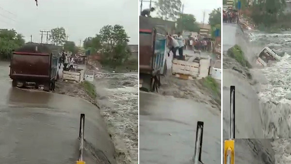 राजकोट। गुजरात में हो रही भारी बारिश के चलते कई इलाकों में बाढ़ के हालात पैदा हो गए हैं। राजकोट से बहती लापासरी नदी का जलस्तर बहुत बढ़ गया है। यहां कोठारिया के पास स्थित लापासरी नदी के पुल से एक वाहन देखते ही देखते पानी में बहकर डूब गया। हालांकि, उसके पानी में खिसकने से पहले ही उसमें सवार कई लोगों को एक ट्रक पर चढ़ा लिया गया था। मौके पर मौजूद लोगों ने घटना का वीडियो रिकॉर्ड किया।