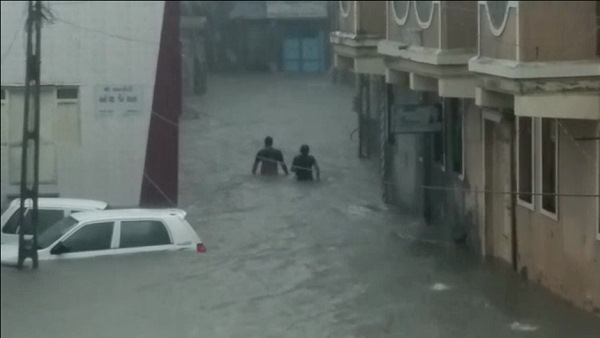 कच्छ। मानसून की शुरूआत के साथ ही गुजरात के दक्षिणी हिस्से में भारी वर्षा हुई। आज कच्छ में कई स्थानों पर सिर्फ दो घंटे में 4 इंच से ज्यादा बारिश हुई। जिससे चारों तरफ पानी ही पानी नजर आने लगा। निचले इलाकों में घर पानी में कमर तक डूब गए। लोग अपने सामान को उूंची जगहों पर पहुंचाने लगे। गली-मोहल्ले ऐसे दिखने लगे, जैसे बाढ़ आ गई हो। कारें आधी डूब गईं।