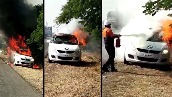कार में अचानक लगी आग, ऑटो लॉक नहीं खुलने पर ड्राइवर जला जिंदा, देखें VIDEO
