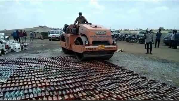 कहां से आईं शराब की ये लाखों बोतल? कोरोना लॉकडाउन में रोडरोलर से कुचलीं- VIDEO