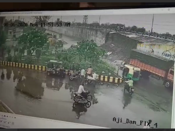 VIDEO: बारिश के कारण राजकोट में ढही ओवरब्रिज की दीवार, एक्टिवा सवार 2 लोग दबकर मरे
