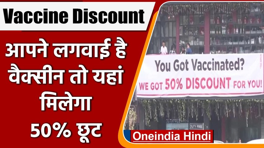 गुरुग्राम के साइबर सिटी मॉल में रेस्तरां, पब में कोरोना वैक्सीन की दोनों खुराक लेने वालों को 50 प्रतिशत की छूट और पहली डोज लेने वाले को 25% की छूट दी जा रही हैं। पब और बार के डारेक्टर युद्धवीर सिंह ने बताया कि हमारा यह स्पेशल ऑफर न सिर्फ बिजनेस को पूरा करेगा बल्कि सुरक्षा भी सुनिश्चित करेगा। इस ऑफर के तहत मॉल के बाहर बड़े-बड़े 50 प्रतिशत डिस्काउंट के बैनर लगाए गए हैं, जिससे लोग इस देखकर आए और ऑफर का फायदा उठाएं।