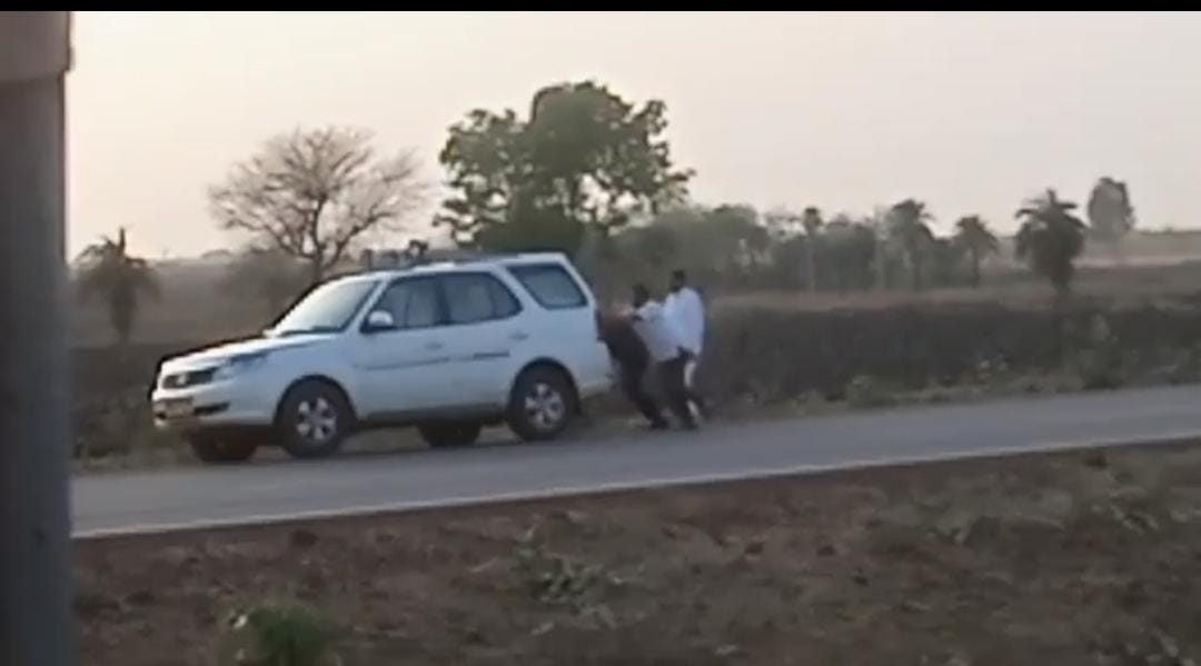 कोलारस से बीजेपी विधायक वीरेन्द्र रघुवंशी का कार को धक्का लगाते हुए का वीडियो सोशल मीडिया पर वायरल होने के बाद विधायक हुए ट्रोल।