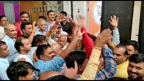 ग्वालियर में बीजेपी प्रत्याशी सुमन शर्मा के प्रचार कार्यालय का उद्घाटन करने पहुंचे केन्द्रीय कृषि मंत्री नरेन्द्र सिंह तोमर के सामने बीजेपी कार्यकर्ताओं ने किया विरोध