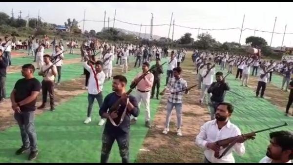 जलालपुर हनुमान मंदिर पर दशहरा मिलन समारोह का आयोजन किया गया था। बीजेपी से बाहर किए गए प्रीतम सिंह लोधी द्वारा यह कार्यक्रम आयोजित किया गया था। इस कार्यक्रम में खास बात यह रही कि आयोजन में शामिल होने वाले सभी लोग हथियारों से लैस होकर आए थे। किसी के पास बंदूकें थी तो किसी के पास तलवारें थी।