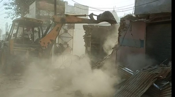 सेवा नगर रोड का चौड़ीकरण किया जा रहा है। सड़क को चौड़ा करने के लिए सड़क किनारे बने मकानों को तोड़ने की कार्रवाई प्रशासन द्वारा की जा रही है। मंगलवार को प्रशासनिक अमला सेवा नगर रोड पर पहुंचा। यहां एसडीएम प्रदीप सिंह मौजूद थे। एसडीएम की निगरानी में भारी पुलिस बल के साथ बुलडोजर की मदद से मकानों को तोड़ने की कार्रवाई की गई।