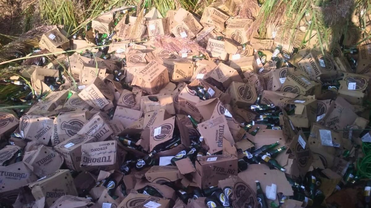 Shivpuri News: मध्यप्रदेश के शिवपुरी जिले में शनिवार की सुबह बियर से भरा एक ट्रक पलट गया। घटना के बाद बीयर की बोतलें लूटने के लिए राहगीर दुर्घटनास्थल की ओर दौड़े और सड़क पर पड़ी बीयर की बोतलों को पुलिस ने लूटने से बचा लिया।