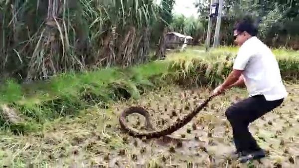 धान कटाई के दौरान दिखा अजगर