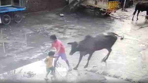 VIDEO: बीच सड़क पर गुस्सैल सांड ने बच्चे और उसके भाई पर किया हमला, देखिए कैसे बची जान