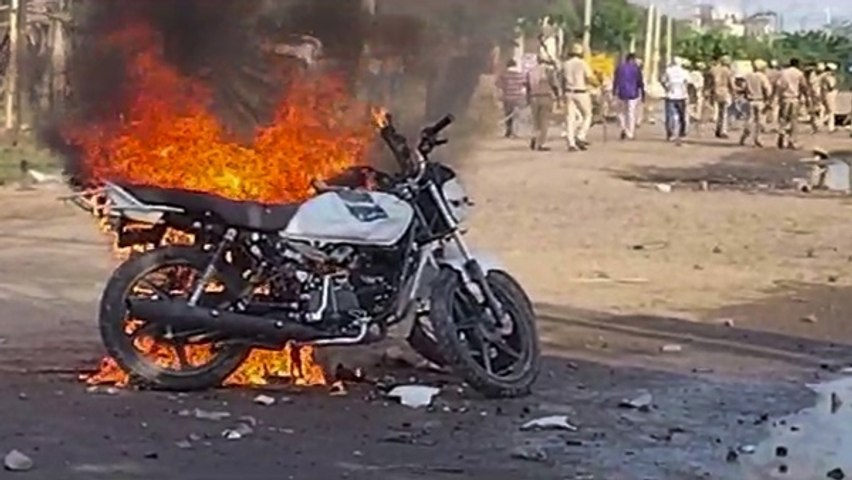 हरियाणा में धार्मिक जुलूस को रोकने की कोशिश कर रही भीड़ ने पथराव किया। कारों में आग लगा दी। इसमें दो होम गार्डों की गोली मारकर हत्या कर दी गई और सात पुलिसकर्मी घायल हो गए।
