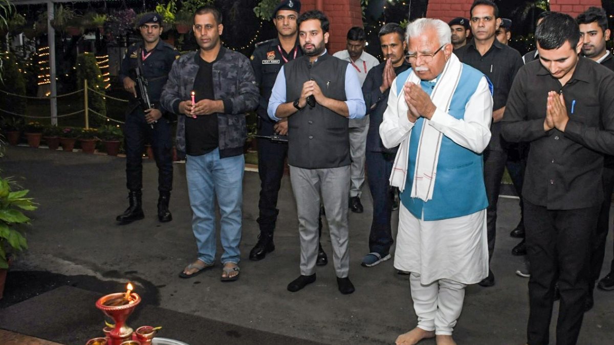 Haryana News: मुख्यमंत्री मनोहर लाल खट्टर ने अपने आवास संत कबीर कुटीर में कार्यरत कर्मचारियों के साथ दीपावली मनाई। इस दौरान सीएम मनोहर लाल ने अपने आवास पर मोमबत्ती के जरिए दीप जलाए और इसके साथ ही पूजा-अर्चना भी की।