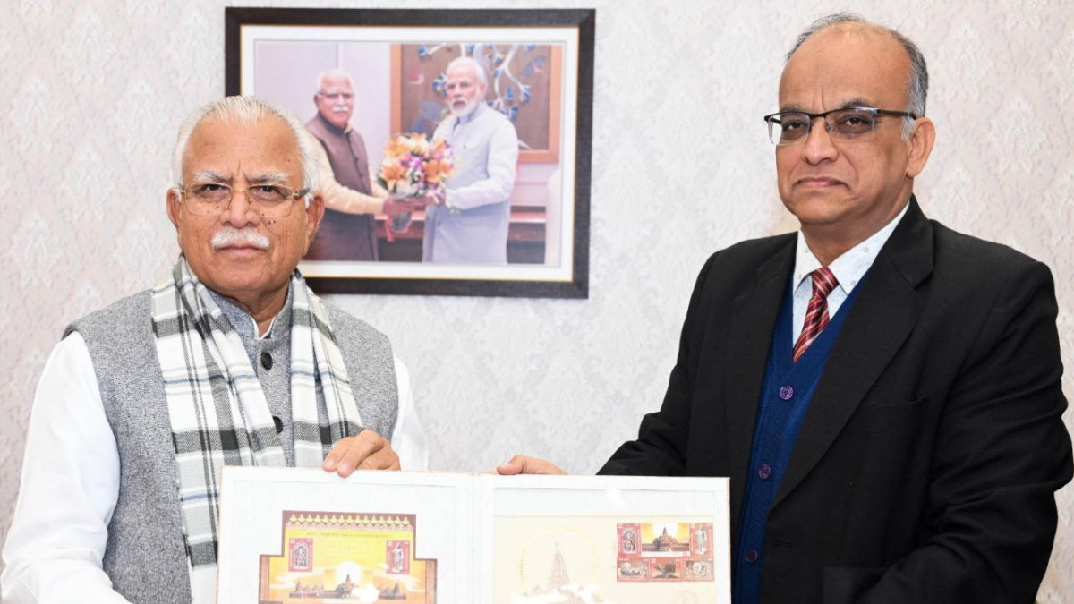 Haryana News: सीएम खट्टर को राम मंदिर का चंदन की खुशबू से सुगंधित डाक टिकट किया भेंट, जताई खुशी