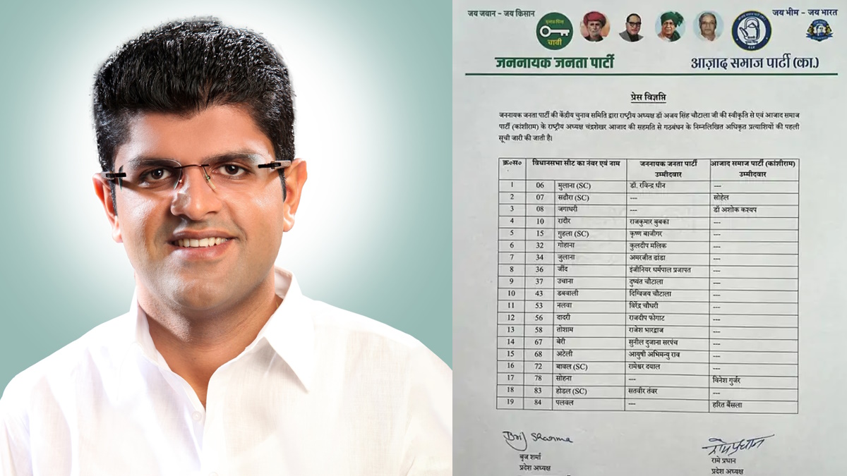 उल्लेखनीय है कि विधानसभा चुनाव 2024 में जेजेपी और यूपी नगीना से सांसद चंद्रशेखर आजाद की आजाद समाज पार्टी मिलकर चुनाव लड़ रही हैं। जेजेपी 70 व एएसपी 20 सीटों पर उम्मीदवार उतारेगी।