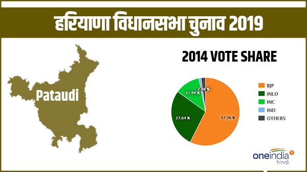 वोट शेयर की अगर बात करें तो 2014 के विधानसभा चुनाव में यहां भाजपा को 56.15 फीसदी और इंडियन नेशनल लोकदल को 27.05 फीसदी वोट मिले। इनके अलावा 15652 वोट हासिल कर कांग्रेस के सुधीर कुमार तीसरे और 1813 वोट पाकर बीएसपी के अजीत सिंह यहां चौथे नंबर पर रहे थे। 1977 के विधानसभा चुनावों से 2014 तक पटौदी विधानसभा सीट पर इंडियन नेशनल लोकदल और कांग्रेस समान रूप से जीत दर्ज करती रही हैं। इंडियन नेशनल लोकदल और कांग्रेस ने यहां 2-2 बार जीत का परचम लहराया है। 2009 के विधानसभा चुनाव में इंडियन नेशनल लोकदल के गंगाराम ने कांग्रेस उम्मीदवार भूपेंद्र को 24747 वोटों के अंतर से हराया था। इस चुनाव में गंगाराम को 49323 और भूपेंद्र को 24576 वोट मिले थे। इससे पहले 2005 में यहां कांग्रेस नेता प्रोफेसर छत्रपाल सिंह ने जीत हासिल की थी। छत्रपाल सिंह ने निर्दलीय प्रत्याशी जोगी राम सिहाग सिसई को 26444 वोटों के अंतर से हराया था।