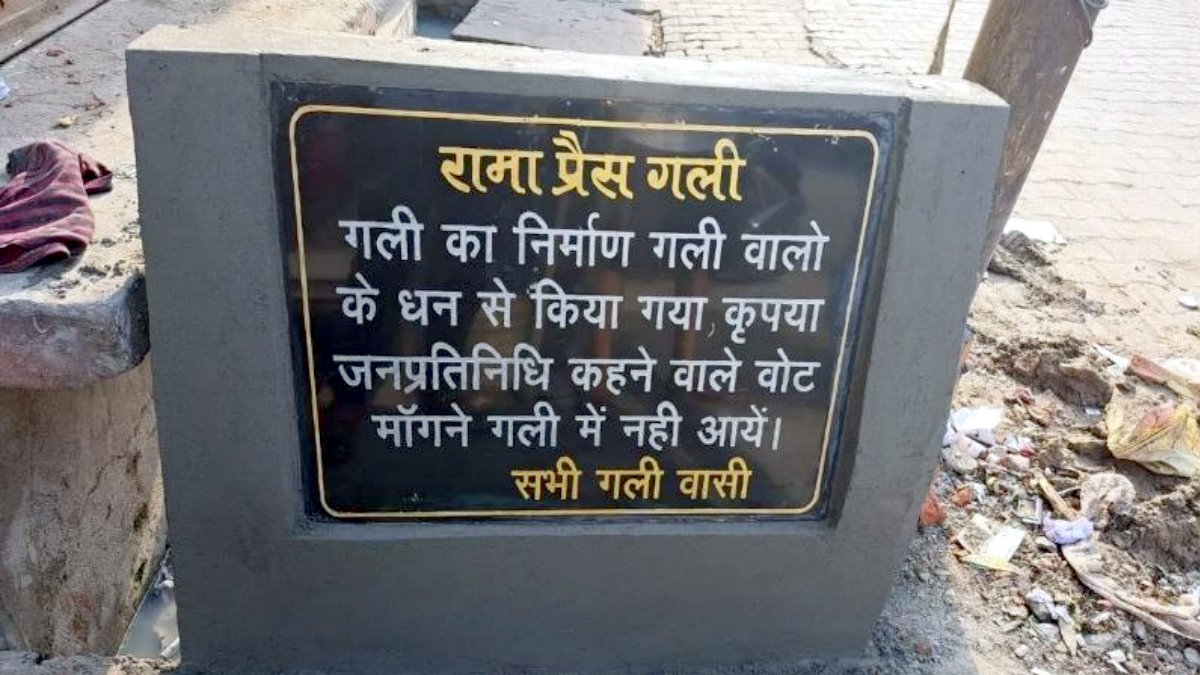 Hathras: चंदे से बनवाई सड़क, लिखा: 'गली का निर्माण हमने कराया है, जनप्रतिनिधि वोट मांगने न आएं'