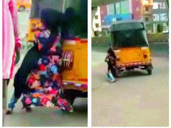 हैदराबाद में सीसीटीवी कैमरे में कैद हुई ये घटना सोशल मीडिया पर बेहद वायरल हो रही है। मंगलवार को सुबह करीब 8 बजे 25 साल की एक महिला अपने बेटे के साथ हैदरगुड़ा में रिलायंस डिजिटल शोरूम के पास खड़ी थी। तभी उसने वहां एक ऑटो को रोका और अपने बेटे को पीछे की सीट पर बैठा दिया। इसके बाद उसकी किसी बात को लेकर ड्राइवर से कहासुनी होना शुरू हो गई। इससे उसका बच्चा रोने लगा और ड्राइवर ऑटो लेकर चल पड़ा लेकिन इस दौरान महिला के कपड़े ऑटो के बंपर में उलझे रह गए। इससे महिला ऑटो के साथ सड़क पर घिसटने लगी। आसपास के लोगों ने ये देखा तो शोर मचाया और ऑटो को रुकवाया।