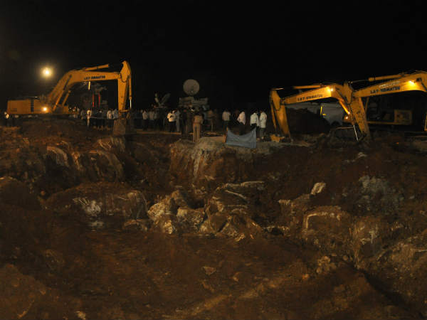 बच्चे को बचाने के लिये बगल में बड़ा गड्ढा खोदा जा रहा है।
