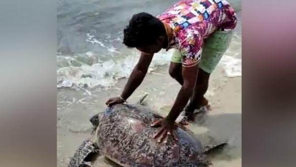 तमिलनाडु में समुद्र किनारे फंस गया था 100 किलो का कछुआ, इस तरह वापस भेजा गया पानी में