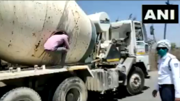 कंक्रीट ट्रक के मिक्सर टैंक में छिपकर यूपी जा रहे थे 18 मजदूर, पुलिस भी हुई हैरान...देखें Video