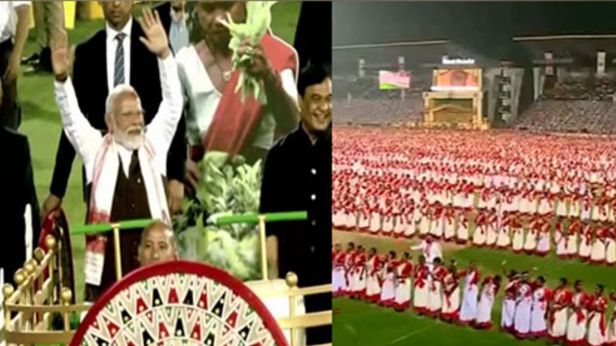 Assam Jhumoir Binandini: गुवाहाटी में पीएम मोदी का शानदार स्वागत, 8000 झुमोईर कलाकारों ने किया प्रदर्शन