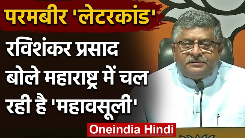 नई दिल्ली। इस वक्त महाराष्ट्र में पूर्व कमिश्नर परमबीर सिंह के लेटर के कारण भूचाल मचा हुआ है, जिसके बाद महाराष्ट्र की शिवसेना सरकार सवालों के घेरे में आ गई है। इसी बारे में आज केंद्रीय मंत्री रविशंकर प्रसाद ने एक प्रेस वार्ता की है, जिसमें उन्होंने कहा कि महाराष्ट्र में इस वक्त जो हो रहा वो 'विकास' नहीं 'वसूली' है। भारत के इतिहास में ये पहली बार हुआ कि किसी पुलिस कमिश्नर ने लिखा कि राज्य के गृह मंत्री ने मुंबई से 100 करोड़ रुपये महीना वसूली का टार्गेट तय किया है। जब एक मंत्री का टार्गेट 100 करोड़ रुपये है तो सोचिए बाकी के मंत्रियों का कितना होगा?