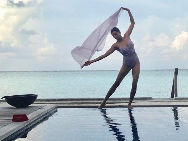 सुष्मिता सेन ने इंस्टाग्राम पर अपनी एक ऐसी तस्वीर शेयर की है, जिसमें वो पूल के सामने खड़ी हुई हैं। तस्वीर में सुष्मिता ने लैवेंडर कलर की एक चुनरी अपने सिर के ऊपर हाथों में ली हुई है। इसी कलर की बिकिनी पहने हुईं सुष्मिता सेन बला की खूबसरत नजर आ रही हैं। सुष्मिता के बैकग्राउंड में नीला आसमान और सामने स्विमिंग पूल दिखाई दे रहा है। रंगों के नायाब मिश्रण और मौसम की ताजगी से भरी इस तस्वीर को देखकर शायद आपका भी दिन बन जाएगा। सुष्मिता के फैंस भी उनके इस नए अवतार को देखकर काफी हैरान हैं।