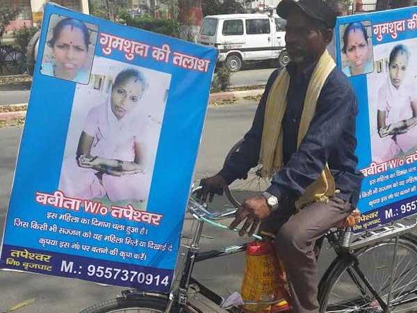 तपेश्वर ने अपनी साइकिल उठाई और इसके हैंडव व पीछे की सीट पर दो पोस्टर लगाए। इनमें बबीता की तस्वीर के साथ लिखा था, 'गुमशुदा की तलाश', और तपेश्वर निकल पड़े अपनी पत्नी की तलाश में।