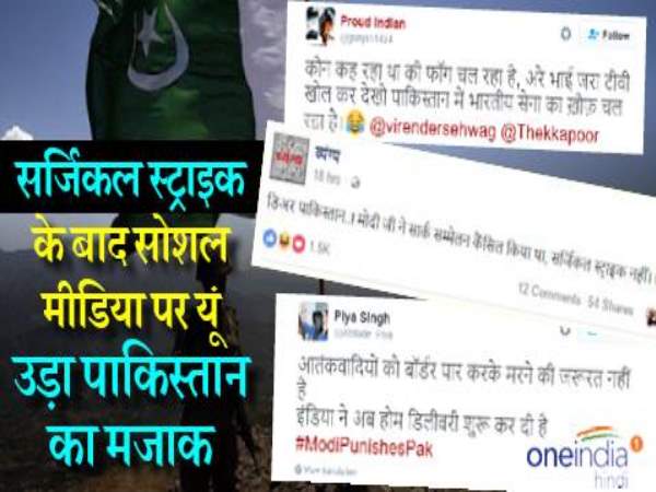 नई दिल्ली। भारतीय सेना की सर्जिकल स्ट्राइक को लेकर सोशल मीडिया पर लोग लगातार प्रतिक्रियाएं दे रहे हैं। इसमें पाकिस्तान को घेरते हुए कई तरह के मजेदार जोक्स भी चल रहे हैं।