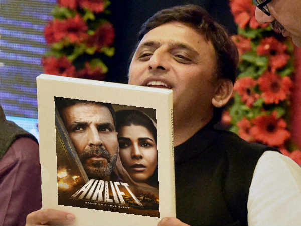 जनता ने अक्षय कुमार की फिल्म एयरलिफ्ट को देखकर कहा- बेहतरीन, बढ़िया और पैसा वसूल! बस फिर क्या था, जनता के स्वर अखिलेश यादव के कानों में पड़े और उन्होंने फिल्म को टैक्स फ्री करके अक्षय को लिफ्ट करा दिया!