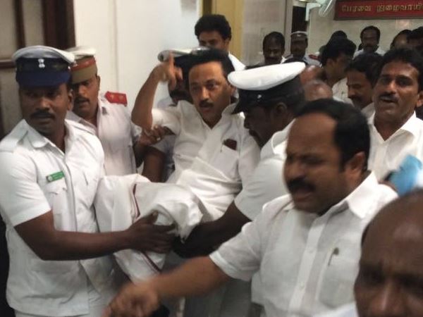 स्टालिन का नाम आते ही डीएमके विधायक नाराज हो गए और शोर मचाना शुरू कर दिया। विधानसभा अध्यक्ष ने सदन की कार्यवाही सुचारु रूप से चलाने की बहुत कोशिश की।