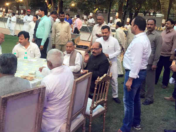 नई दिल्ली। यूपी चुनावों के ठीक पहले एक बार फिर से सियासी गलियारों में ये अफवाह गर्म है कि मुलायम सिंह और अमर सिंह फिर से एक होने जा रहे हैं। दोनों के पर्सनल रिश्ते सुधर गये हैं तभी तो अमर सिंह, दिल्ली में शिवपाल यादव के बेटे और मुलायम सिंह यादव के भतीजे आदित्य की शादी के रिसेप्शन में मुख्य मेजबान के रूप में नजर आयें।