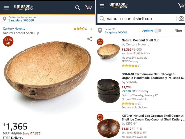 दुनिया से सबसे बड़ी ई कॉमर्स साइट अमेजन नारियल के उपरी छिलके(शेल) को लगभग 1400 रुपए में अपने ग्राहकों को बेच रहा है। यह मजाक नहीं है , 'प्राकृतिक नारियल के शेल कप' को अमेज़न इंडिया द्वारा 1,365 रुपये में बेचा जा रहा है। वेबसाइट ने इस शेल के विवरण में लिखा है कि, ये बिल्कुल नेचुरल है तो इसमें क्रैक्स और डेंट भी हो सकते हैं। क्योंकि ये एक ओरिजिनल नारियल है। नारियल कप एक हवाईयन एक्सेसरी है। जिसका इस्तेमाल पार्टियों और शादी में होता है।