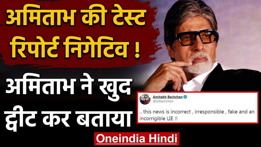 अमिताभ बच्चन ने उन सभी खबरों को सिरे खारिज कर दिया है जिसमें ये दावा किया जा रहा है कि उनकी कोरोना रिपोर्ट निगेटिव आई है। महानायक ने खुद ट्वीट कर ऐसी खबरों को झूठा बताया है। अमिताभ ने ट्वीट का लिखा कि ये खबर गलत और फर्जी है !!'
