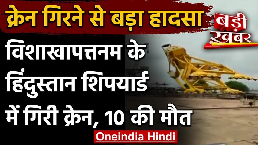 नई दिल्ली। आंध्र प्रदेश के विशाखापत्तनम में हिंदुस्तान शिपयार्ड लिमिटेड में एक विशालकाय क्रेन के गिर जाने से बड़ा हादसा हो गया है। न्यूज एजेंसी एएनआई की रिपोर्ट के मुताबिक इस घटना में अब तक 11 लोगों की मौत हो चुकी है। विशाखापट्टनम जिला कलेक्टर विनय चंद ने मामले की पुष्टि की। घटना से जुड़ा एक वीडियो सोशल मीडिया पर सामने आया है जिसमें क्रेन को गिरते हुए देखा जा सकता है। क्रेन पर लगभर 30 लोगों के सवार होने की वजह से इस आदसे में कई लोगों के घायल होने की भी खबर है।