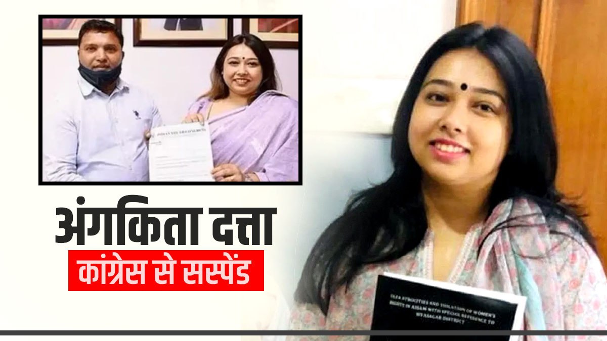Angkita Dutta Suspend Assam Congress: असम युवा कांग्रेस की पूर्व प्रमुख अंगकिता दत्ता को पार्टी से 6 साल के लिए सस्पेंड कर दिया है। उन्होंने आरोप लगाया कि भारतीय युवा कांग्रेस के अध्यक्ष श्रीनिवास बीवी के खिलाफ उत्पीड़न का आरोप लगाने के चलते हमें सस्पेंड किया गया है। वहीं, पार्टी ने अपने आधिकारिक बयान में कहा कि अंगकिता दत्ता को पार्टी विरोधी गतिविधी के चलते सस्पेंड किया गया है।