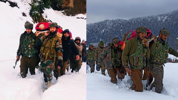 Photos: सेना के जवानों ने दिखाया दम, घुटनों तक जमी बर्फ में प्रेग्नेंट महिला को कंधों पर उठा पहुंचाया अस्पताल
