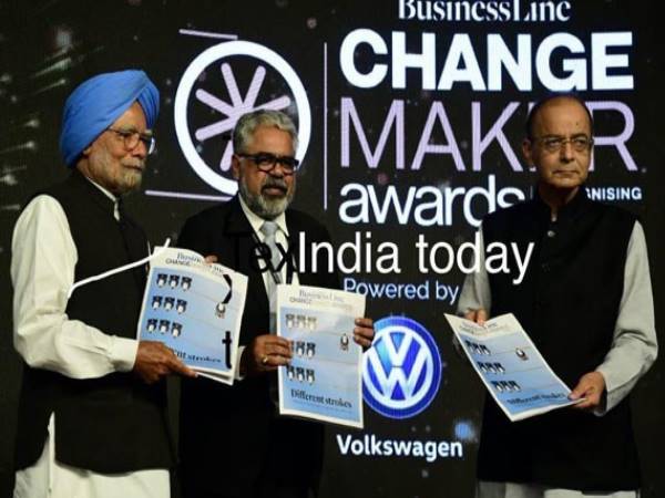नई दिल्ली। पूर्व प्रधानमंत्री मनमोहन सिंह ने शुक्रवार को केंद्रीय मंत्री अरुण जेटली को गुड्स एंड सर्विसेज टैक्स (जीएसटी) को सफलतापूर्वक लागू किए जाने को लेकर बिजनेसलाइन चेंजमेकर ऑफ द ईयर पुरस्कार प्रदान किया। इस पुरस्कार के बाद बीजेपी को एक मौका मिल गया है जिसके जरिए वो कांग्रेस पर निशाना साध सकती है।