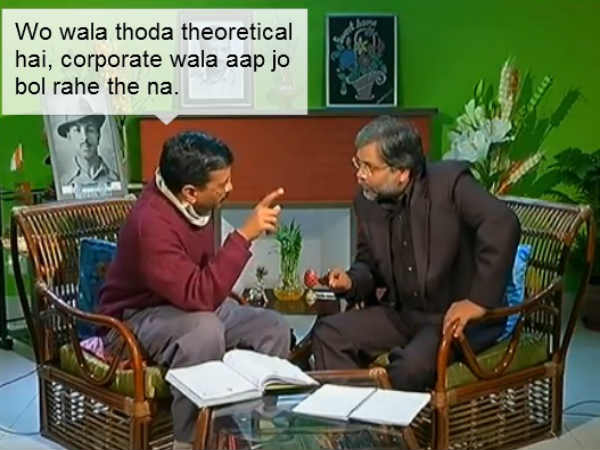 इस वीडियो में देख कर आपको अंदाजा हो जायेगा कि किस तरह केजरीवाल टीवी स्क्रीन पर आने से पहले निगोशिएशन करते हैं। बाजपेयी ने पूछा कॉर्पोरेट वाला सवाल उठाना है, तो केजरीवाल बोले वो काफी थियोरिटिकल है, इसलिये इसलिये मैं उसमें नहीं जा रहा था, जितना मिडल क्लास है वो एंटी हो जायेगा। वो सवाल मत पूछिएगा। जान बूझ कर मैं ऐसे डिबेट में नहीं पड़ना चाहता, जिसमें सवाल उठें।