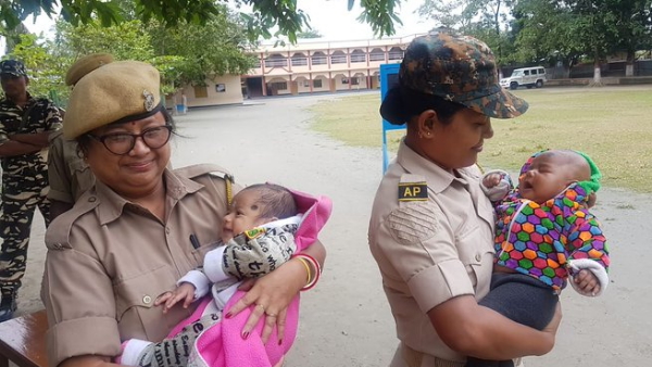देश-विदेश की दिल दहला देने वाली खबरों के बीच असम पुलिस की खबर ने लोगों को थोड़ी राहत दी है। इन महिला पुलिसकर्मियों को देखकर लगता है कि दुनिया में इंसानियत अभी जिंदा है। बता दें, वायरल हो रही फोटो असम में आयोजित शिक्षक पात्रता परीक्षा (टीईटी) के समय की है। परिक्षा के दौरान महिला पुलिसकर्मियों की भी तैनाती की गई थी, इस दौरान परीक्षा देने आई महिलाओं में कुछ ऐसी थीं जो अभी-अभी मां बनीं थी और बच्चों को घर नहीं छोड़ सकती थी।