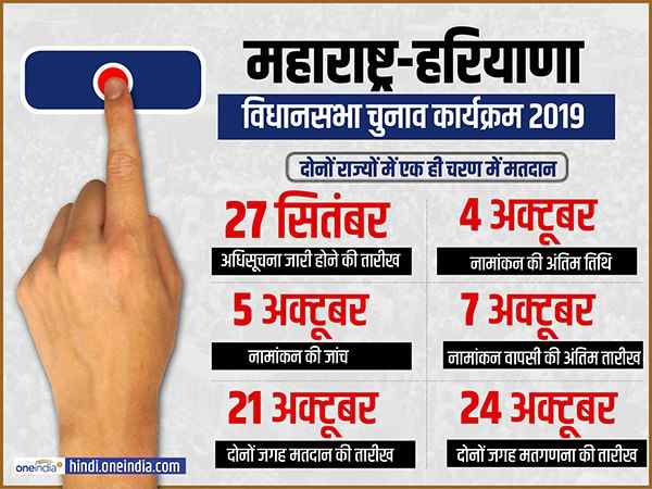 महाराष्ट्र में विधानसभा की 288 और हरियाणा में 90 सीटों पर चुनाव होने हैं। फिलहाल इन दोनों ही राज्यों में भारतीय जनता पार्टी की सरकार है।