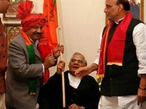 इस फोटो में वाजपेयी एक कुर्सी में बैठे हुए हैं और उनकी दाहिनी ओर मोदी सरकार में हेल्थ मिनिस्टर डॉ हर्षवर्धन उन्हें बीजेपी का झंडा सौंपते हुए दिख रहे हैं। उनके बाई ओर राजनाथ सिंह खड़े हैं। सफेद कुर्ते और काले रंग का स्वेटर भी पहने अटल बिहारी वाजपेयी झंडा पकडे हुए हुए हंस रहे हैं। हालांकि राजनाथ सिंह द्वारा शेयर की गई फोटो पुरानी थी।