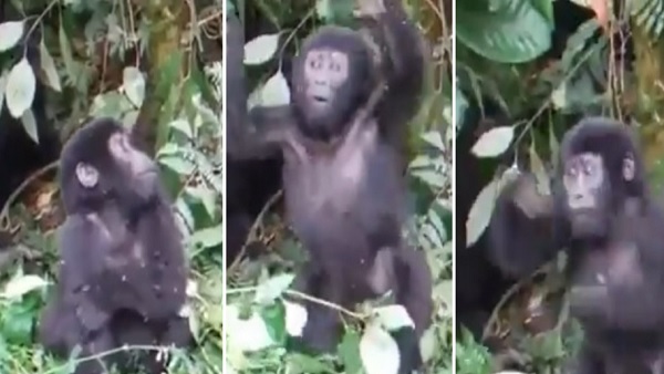 वायरल वीडियो में बेबी गोरिल्ला घने जंगल के बीच बैठा दिख रहा है और बड़े गोरिल्ला की तरह अपनी छाती पीटने की कोशिश कर रहा है। बेबी गोरिल्ला ने अभी तक अपनी छाती पीटना नहीं सीखा था। इसलिए, जब कोई उसे नहीं देख रहा था तो छोटे गोरिल्ला ने इसे आजमाने का फैसला किया।