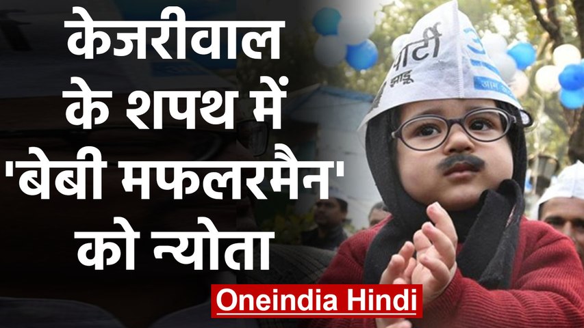 आप आदमी पार्टी के आधिकारिक ट्विटर हैंडल पर इस बात का ऐलान किया गया कि 'बेबी मफलरमैन' को भी शपथ ग्रहण समारोह में शामिल होने के लिए न्योता दिया गया है। बता दें कि नतीजे वाले दिन इस 'छोटे केजरीवाल' की तस्वीर सोशल मीडिया पर वायरल हो रही थी। 'जूनियर केजरीवाल', 'बेबी मफलरमैन', 'छोटा केजरीवाल' और ना जाने इतने नामों से फेमस हो रहे बच्चे का अंदाज सबको आकर्षित कर रहा था।