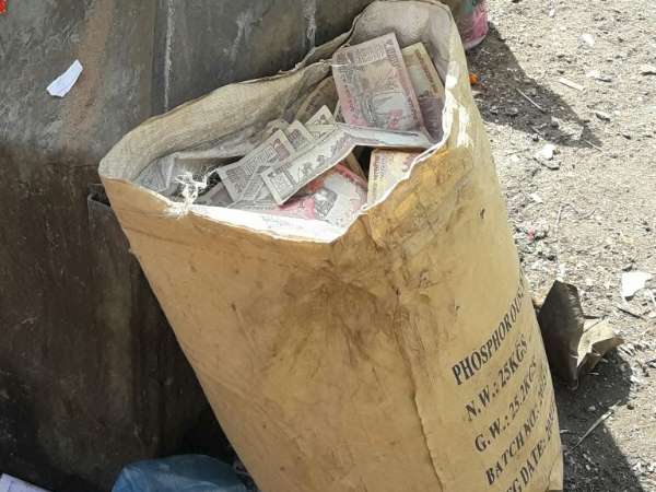 बोरी में भरकर फेंके गए रुपये